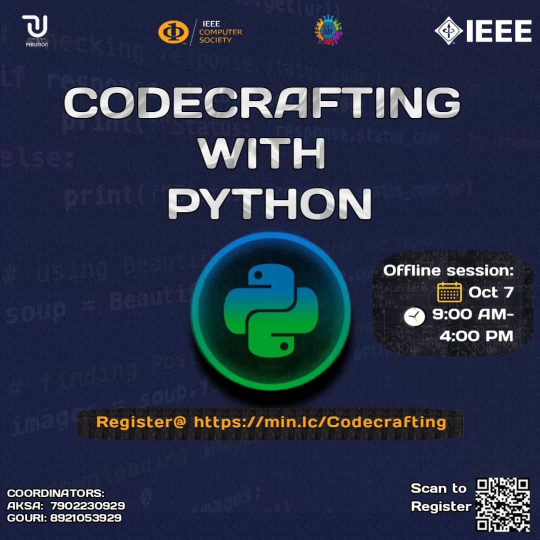 IEEE CS SBC COLLEGE OF ENGINEERING PERUMON conducted a workshop 'Codecrafting with python'.