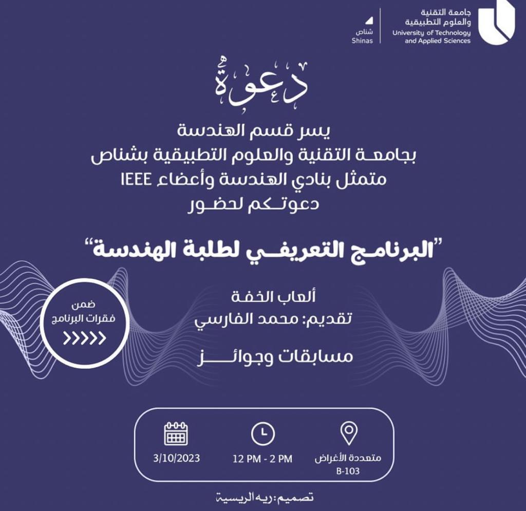 IEEE Student branch and Engineering Club in University of Technology and Applied Sciences - Shinas conducted an Induction program for Engineering students.