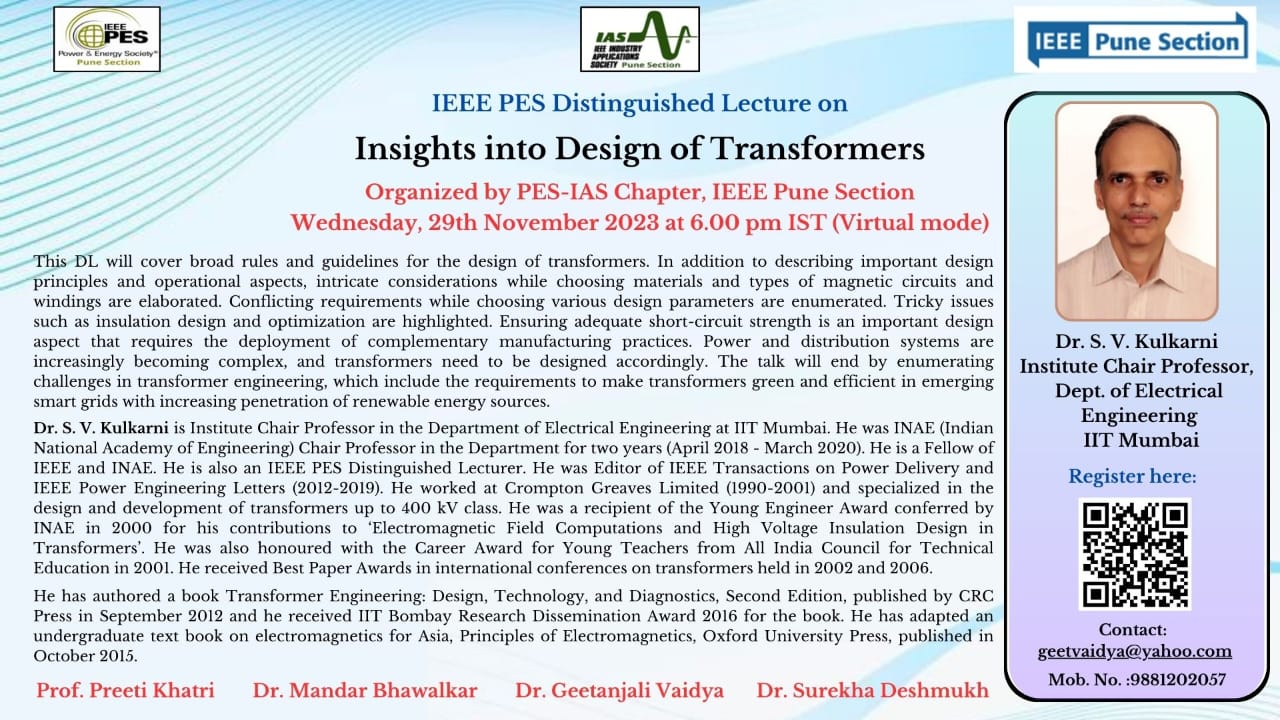 IEEE PES Distinguished Lecture on 'Insights into Design of Transformers'
