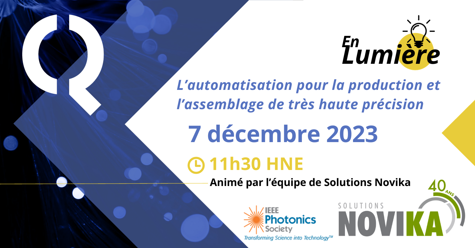 Quelques soient les produits développés en optique-photonique, la production et l’assemblage de très haute précision sont un défi pour le recrutement et la rétention de la main-d’œuvre, pour la qualité et pour la productivité. Déjà active dans le développement et l’automatisation des opérations les plus précises et délicates, Solutions Novika désire vous entendre sur vos besoins.