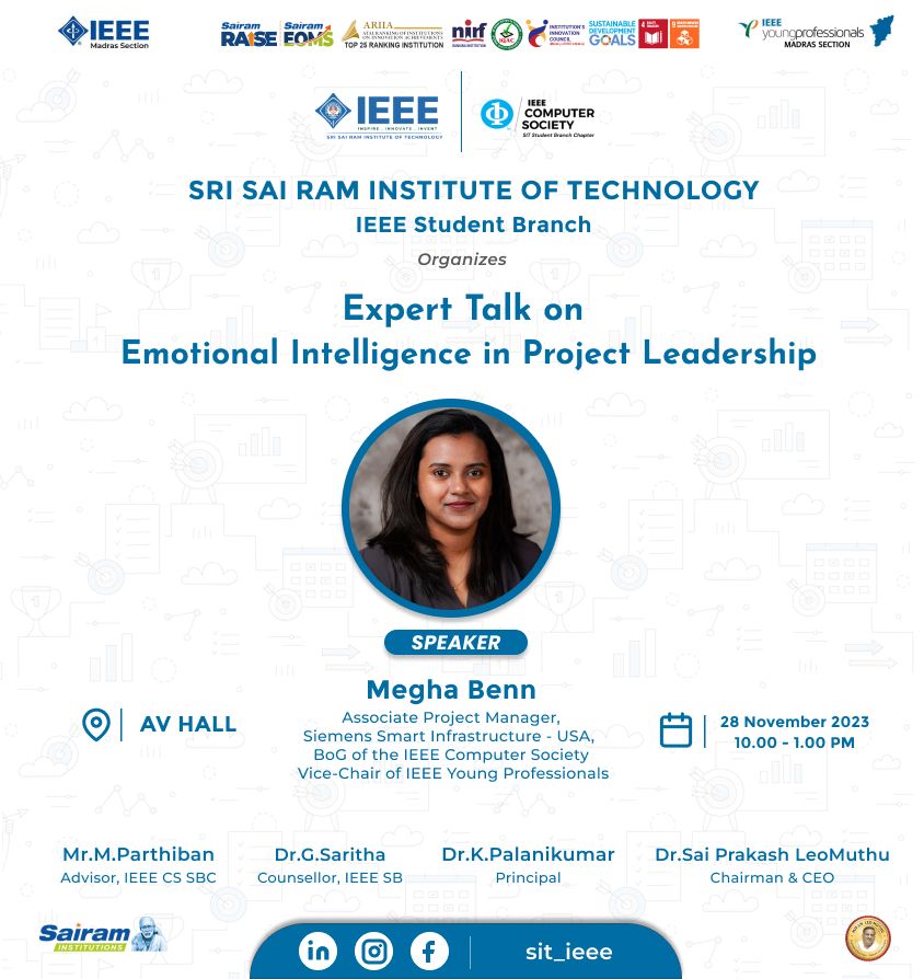 This event is about an expert talk session on emotional intelligence regarding with respect to project leadership. The session covered various factors and key insights of emotional intelligence in our daily life activities. The expert also taught the students regarding richard e merwin scholarship and ieee awards scholarships benefits.