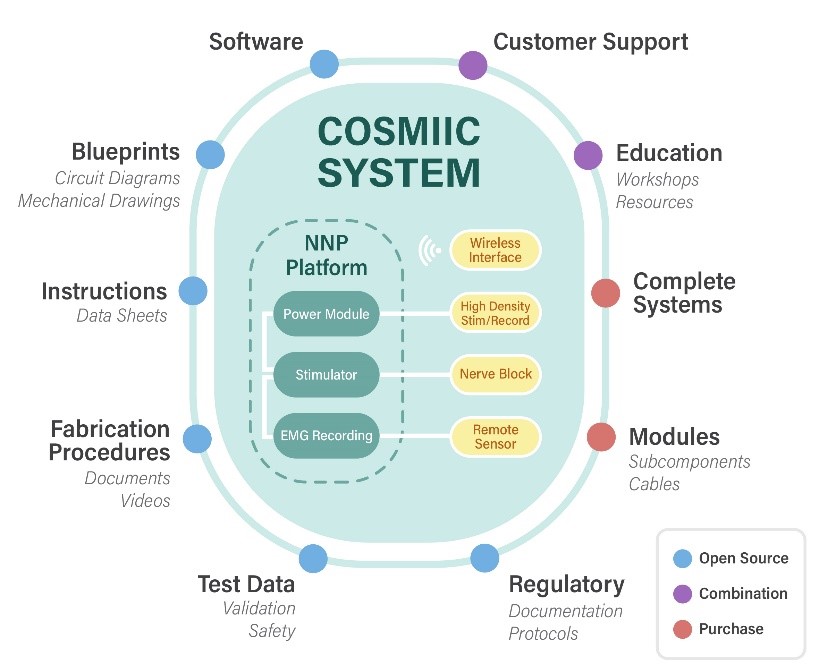 This talk will introduce the Cleveland Open Source Modular Implant Innovators Community (COSMIIC) – see cosmiic.org. The overall goal of COSMIIC is to establish an open source, modular network of active implantable devices for use in pre-clinical and early feasibility human research, and to provide ongoing support for this technology through a vibrant, sustainable community of users. The concept is based on our established platform ecosystem, the Networked Neuroprosthesis (NNP), which provides a solid technological platform with an established regulatory status for human use. The COSMIIC concept is being established through major funding from the National Institutes of Health (NIH) Stimulating Peripheral Activity to Relieve Conditions (SPARC) Program. The project includes a broad investigative team in Cleveland at CWRU, MHS, VA Northeast Ohio Healthcare System, and the Cleveland Clinic Lerner College of Medicine; as well as investigators at the University of Michigan and the University of California, Los Angeles (UCLA).