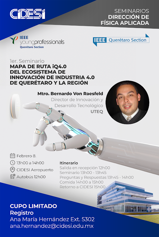 El "Mapa de Ruta iQ4.0 del Ecosistema de Innovación de Industria 4.0 de Querétaro y la Región" busca aprovechar oportunidades prospectivas en la región en temas de Industria 4.0. Se basa en la metodología IFM (propuesta por la Universidad de Cambridge) y cuenta con el respaldo de instituciones líderes y redes de innovación.