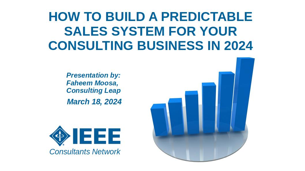 Join us for our next Consultants' Network meeting on Monday, March 18th at 7:00PM. Strategic business consultant Faheem Moosa will provide actionable advice for consultants looking to grow their businesses through increased sales.