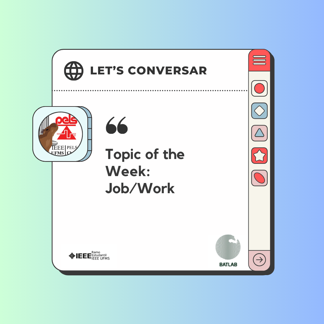 Let's Conversar is a conversation group, so far informal, with the goal of improving our communication in English. The seventh week had a topic: Job/Work.