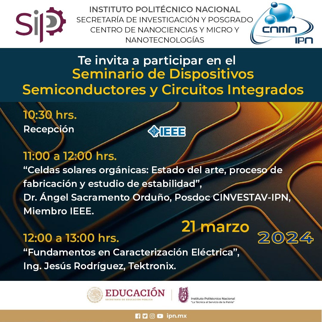 - Co-sponsored by Section of Solid-State Electronics (SEES), CINVESTAV-IPN and Center for Nanociences and Micro and Nanotechnologies of the National Polytechnic Institute.