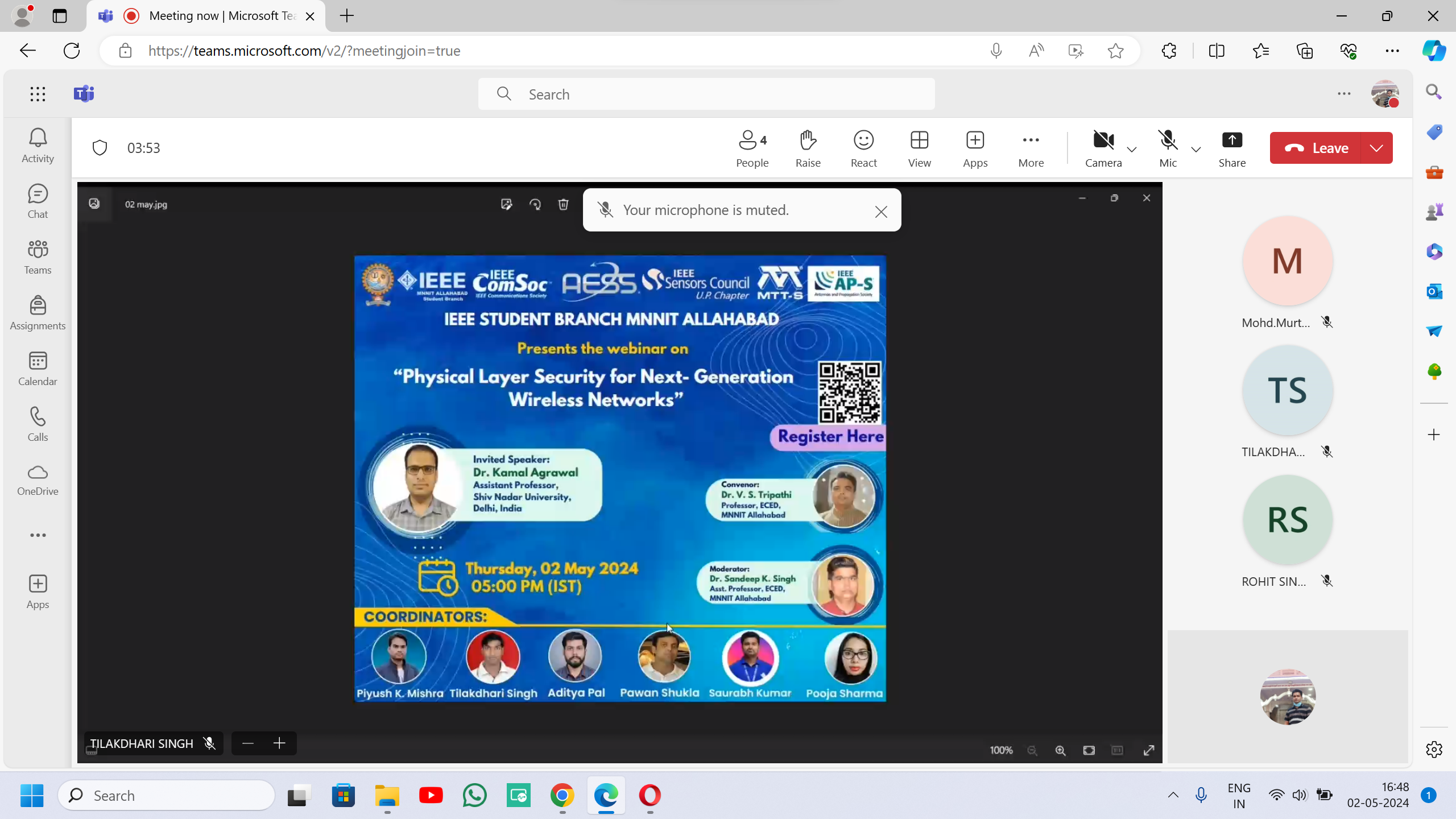 We are excited to extend our warmest invitation to you for a webinar on “Physical Layer Security for Next- Generation Wireless Networks” organized by the IEEE Student Branch Chapter MNNIT Allahabad. This webinar aims to explore the latest advancements and applications in Wireless Networks technology, offering valuable insights into this rapidly evolving field.