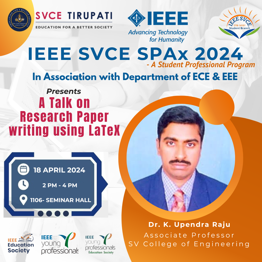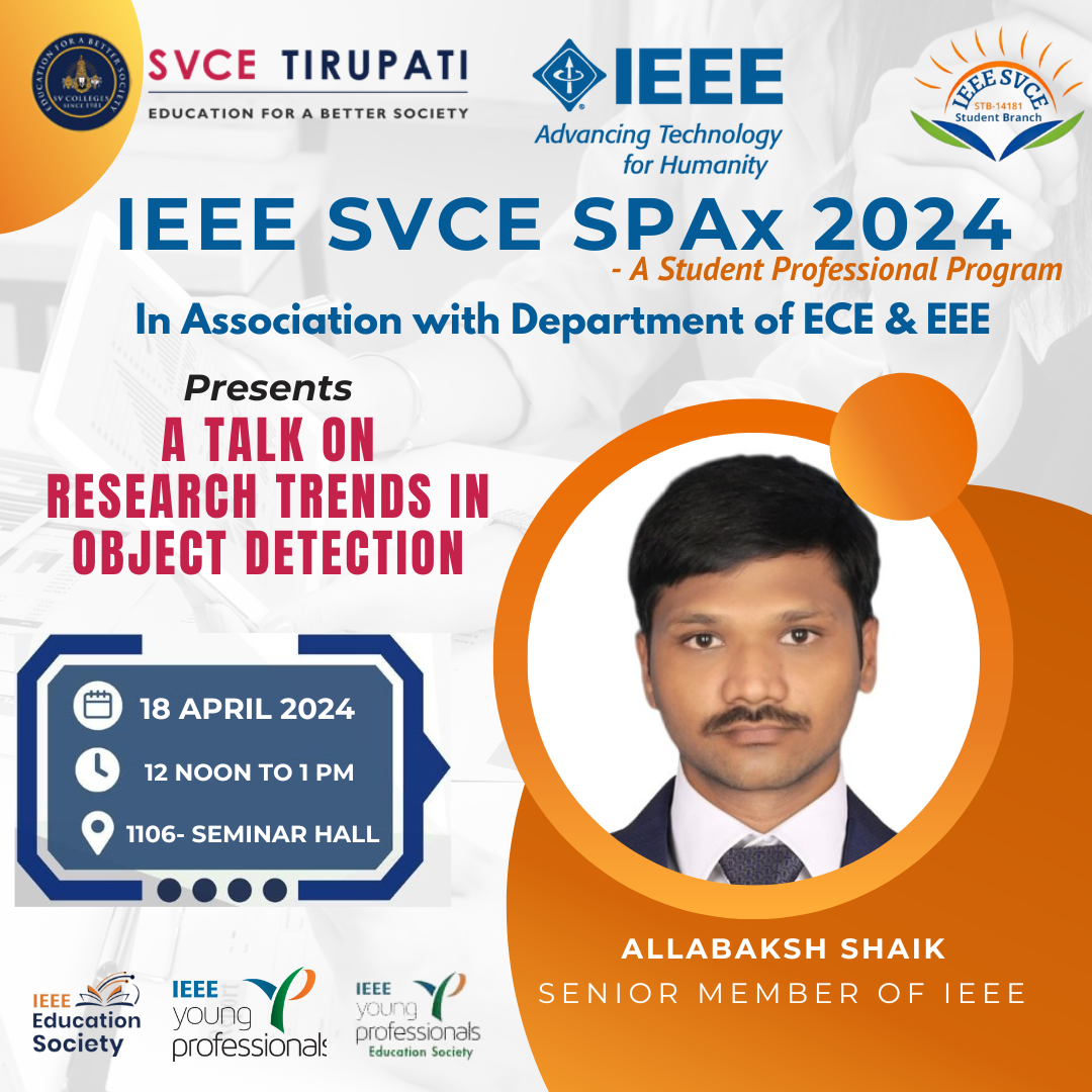 Dr.C. Chandra Sekhar Sir, Principal of SV Engineering College. Sir delivered an inspiring speech about the upcoming IEEE SVCE SPAX event.