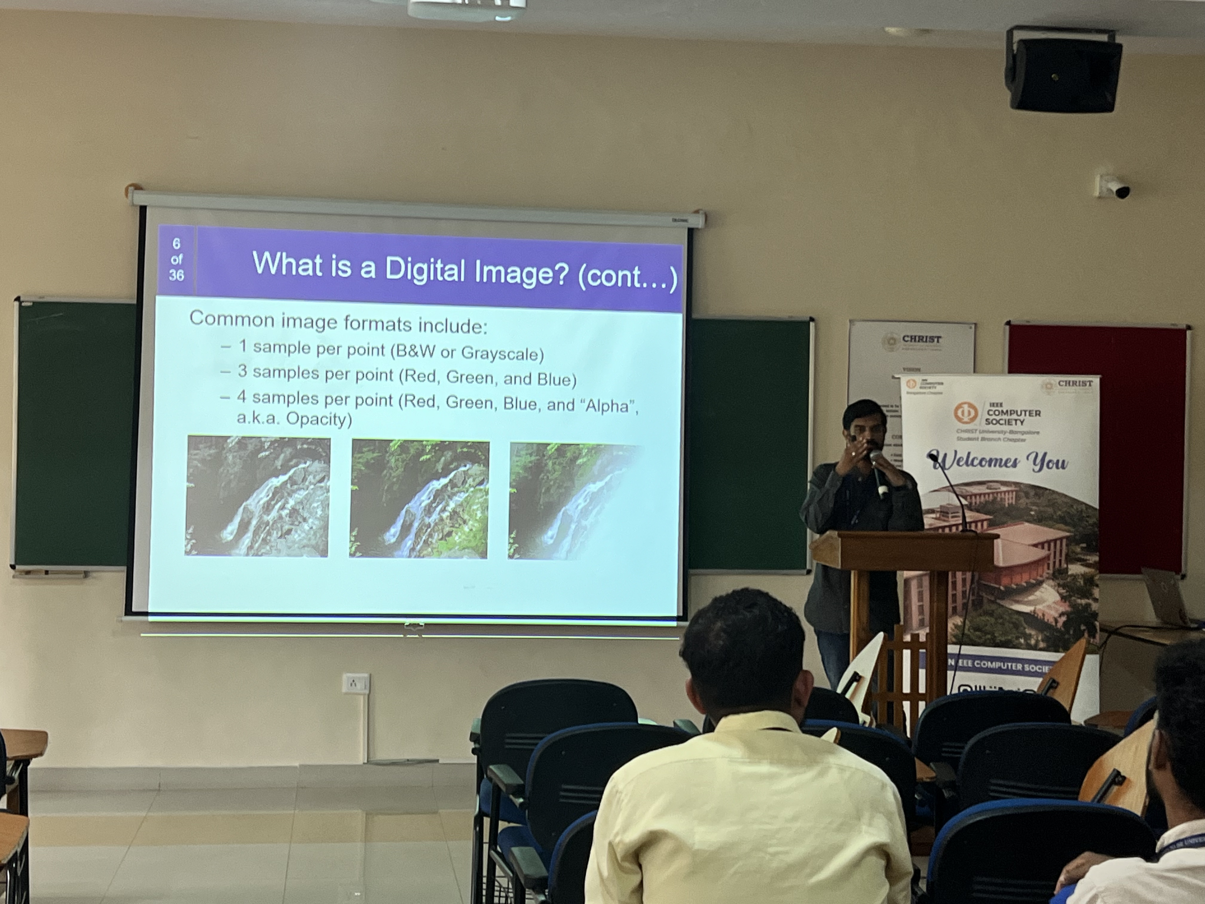 Digital images are the foundation of image processing and are composed of a matrix of pixels. Each pixel represents a specific colour or intensity value. The session began by explaining digital images, highlighting their properties, such as resolution, bit depth, and colour representation. Understanding these properties is crucial for comprehending how images are captured, stored, and manipulated in various applications.