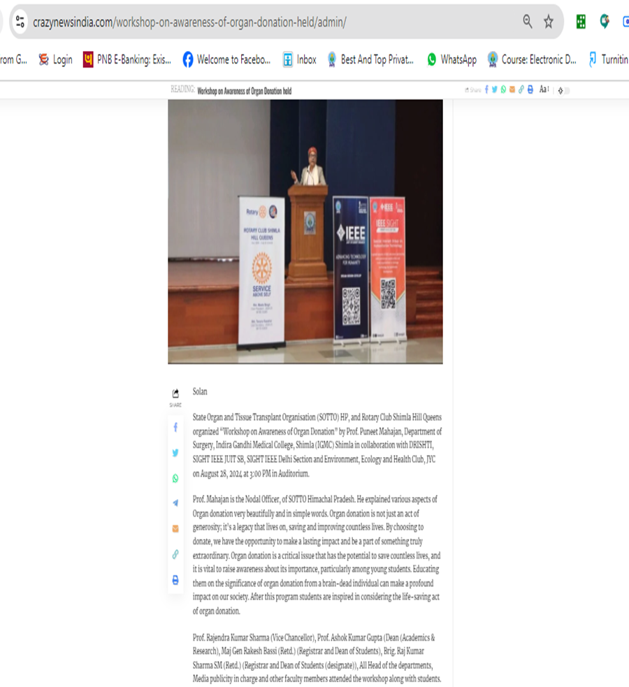 - Crazy News India - https://crazynewsindia.com/workshop-on-awareness-of-organ-donation-held/admin/