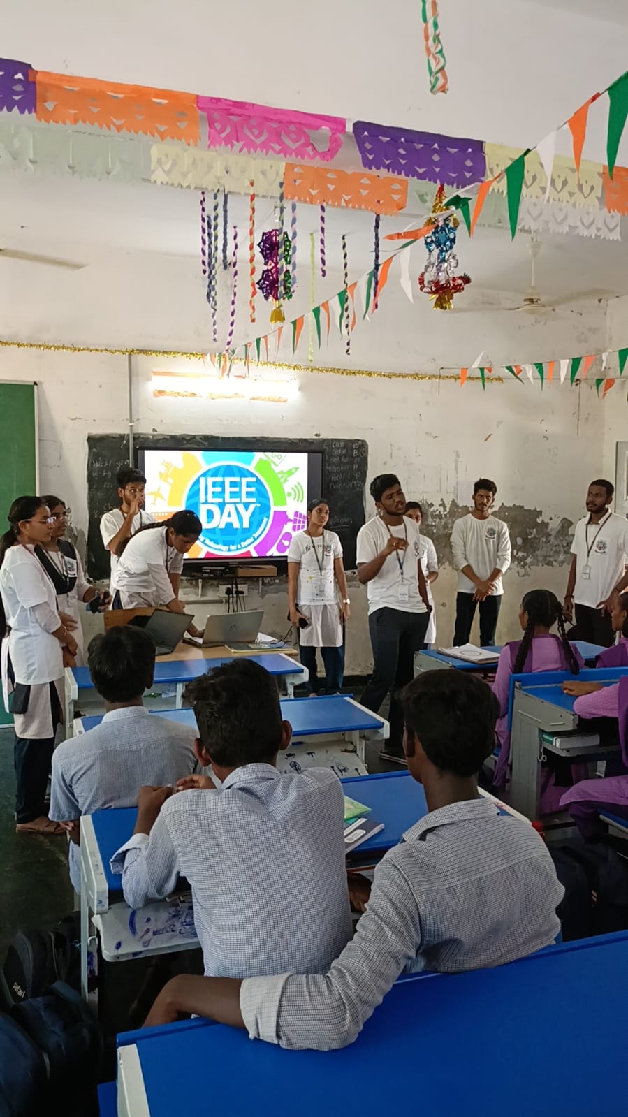 | Event Photo - 3 | IEEE volunteers are seen engaging with a group of attentive students, explaining the significance of IEEE and IEEE Day. The volunteers introduce the students to STEM concepts, sharing insights on how technology and engineering are shaping the future. | 176.02 KiB |