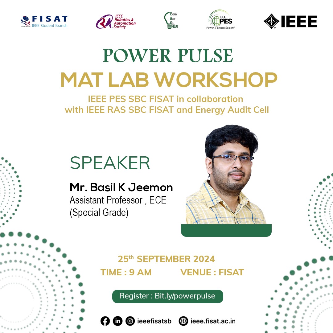 The event began with a networking session led by Ashna K S, PES Secretary IEEE FISAT PES SBC, and Veena Prakash, WIP IEEE FISAT PES SBC. This session, lasting for two hours, included engaging activities that encouraged interaction and collaboration among participants. Following the networking session, the MATLAB workshop commenced in two phases. The first session was held from 11:00 AM to 1:00 PM, where the basics of MATLAB were introduced. After a lunch break, the second session took place from 2:00 PM to 4:00 PM, focusing on more advanced applications, ensuring participants gained practical experience with the software expertly led by Mr. Basil K. Jeemon, Assistant Professor in the ECE department. This session attracted a significant number of second-year students from the ECE, EEE, and EI departments, eager to enhance their programming skills. Mr. Basil K Jeemon introduced participants to the fundamentals of MATLAB, covering essential concepts such as programming structures, syntax, and execution techniques.