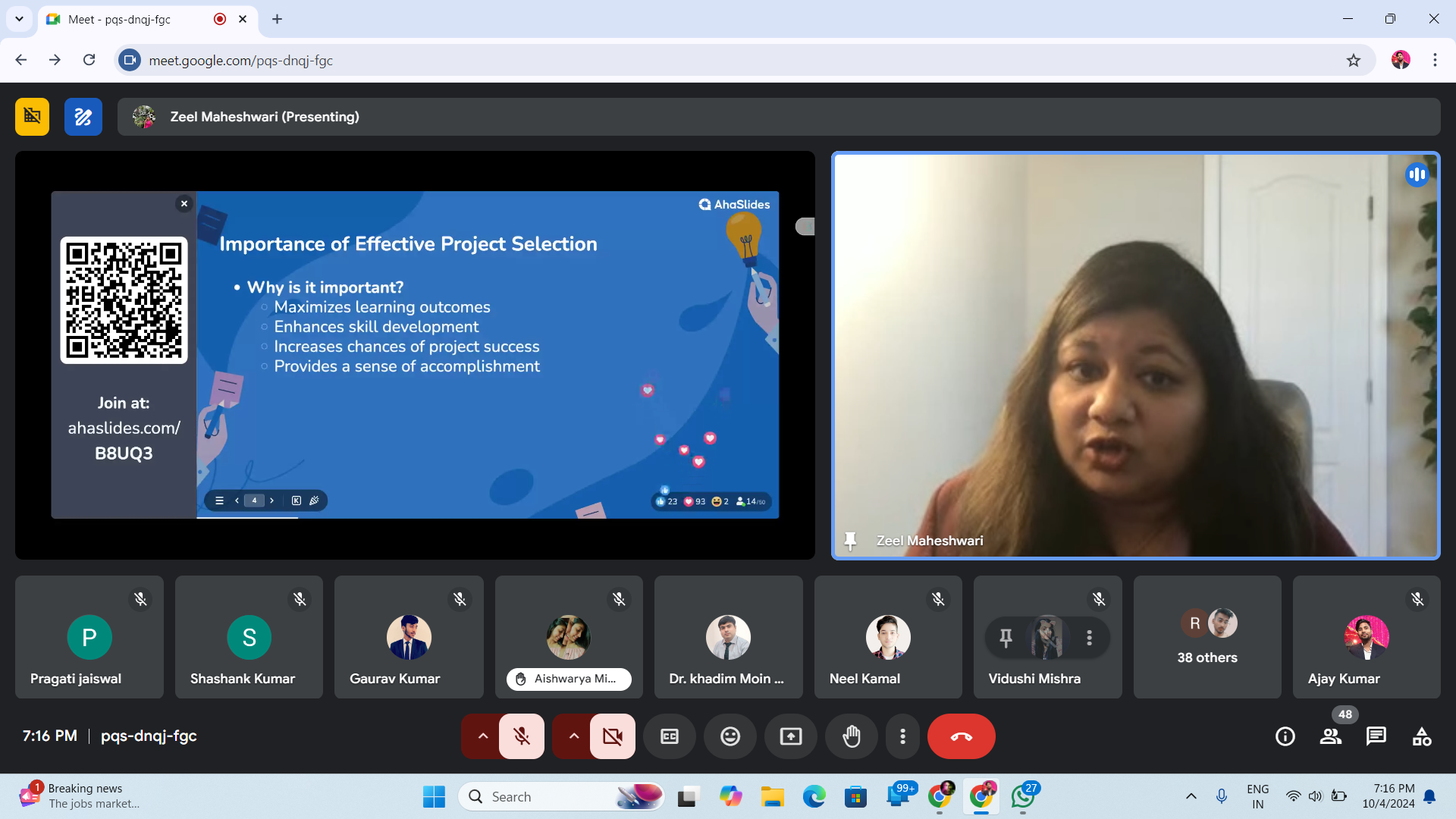 Dr. Zeel Maheshwari, Associate Professor at Northern Kentucky University, USA, on the topic "Effective Project Preparation and Selection in Undergraduate Engineering Studies". 💡