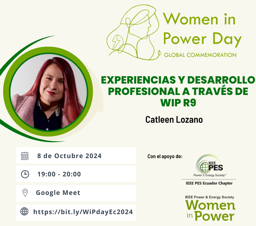 Celebramos el Women in Power Day con una charla virtual donde Catleen Lozano ex representante WiP de la Región 9, nos compartirá su experiencia en esta iniciativa de PES y cómo esto le ha ayudado a potenciar su carrera profesional. Participa y conoce los beneficios de WiP 👷🏽♀️💚⚡