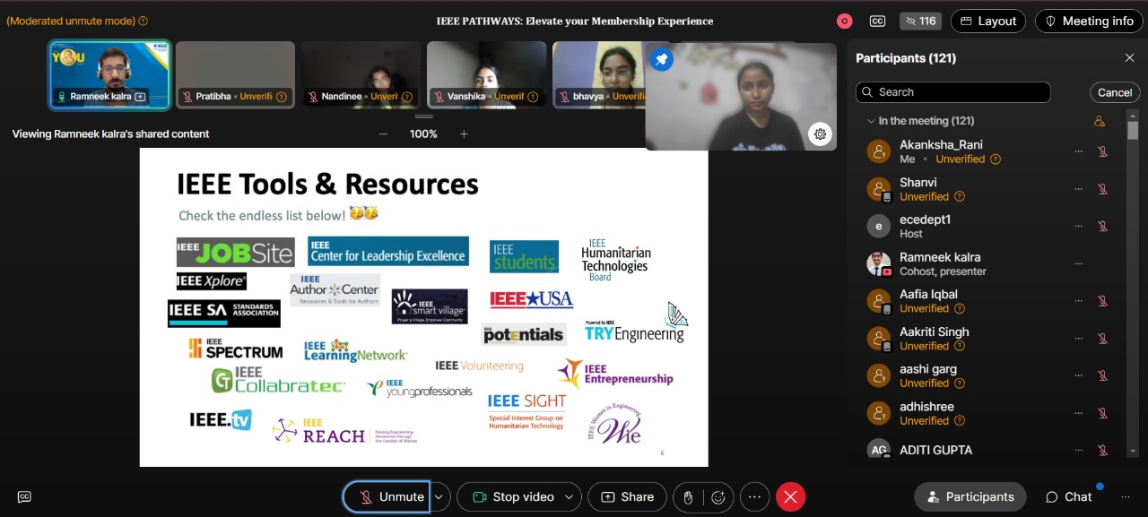 The online event featured esteemed guest speaker, Mr. Ramneek Kalra, a renowned IEEE impact creator. He emphasised IEEE's pivotal role in empowering students and professionals to tackle real-world challenges. Drawing from his personal experience, he shared how developing software for his college library in his first year exemplified the impact of IEEE's resources and community.