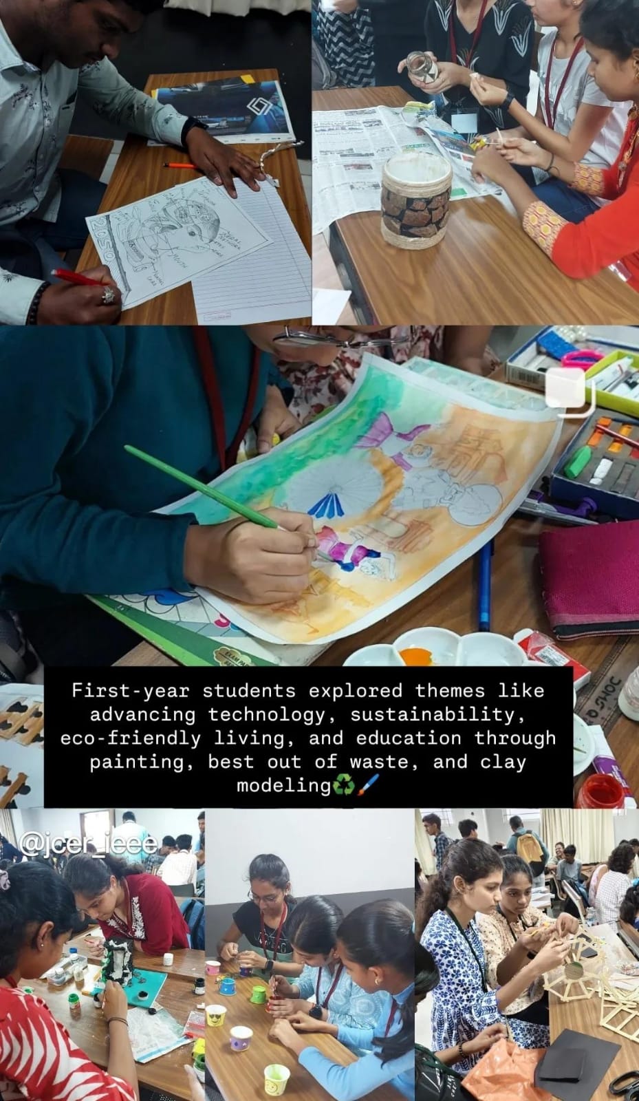 "Creative Engineering: Freshers' Art & Innovation Fest," hosted by JCER IEEE SB was a dynamic event designed to help first-year engineering students build confidence, interact with peers, and explore their creative sides through engaging activities. The students collaborated with fellow batchmates to create unique art pieces. These activities not only foster teamwork but also encourage innovative thinking and problem-solving in a fun and supportive environment. An experienced artist or simply curious to explore your creative side, this event aimed to engage the students to learn new techniques and create everything from a collaborative mural to innovative sculptures made from recycled materials. Showcase your work, share ideas, and connect with fellow students in an inspiring environment. JCER IEEE SB provided this unique opportunity to express the artistic talents while enhancing your engineering skills.