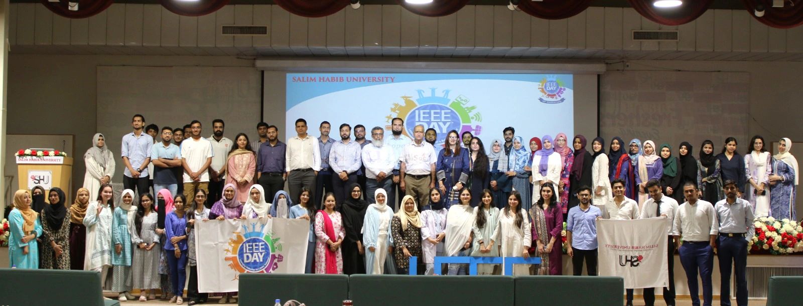 Salim Habib University's IEEE Student Branch, in collaboration with the WIE Affinity Group Karachi Section, IEEE SHU EMBS (Engineering in Medicine & Biology Society), and IEEE SHU ComSoc, organized an event in celebration of IEEE Day 2024, on Tuesday, October 1, 2024.