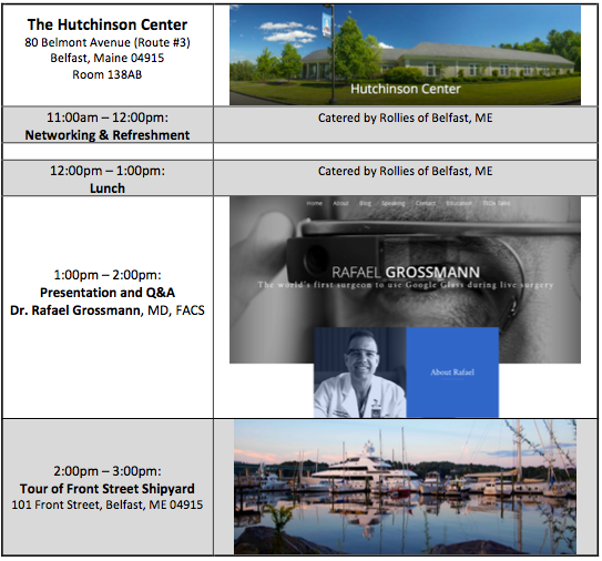 Our speaker Dr. Rafael Grossmann, an exciting internationally known speaker, is a trauma surgeon at EMMC and uses technology extensively in his practice. He is the world's first surgeon to use Google Glass during live surgery. He has been invited by many international conferences and TED talk multiple times including topics: "Ok glass, I need a surgeon", "OK Glass - disrupt healthcare", "iPod Teletrauma", and "Google glass and other marvels in healthcare and beyond". His TED talks are on YouTube and his personal website http://rafaelgrossmann.com/. Recently, he has been heavily involved with VR, Augmented and Mixed Reality platforms. Dr. Grossmann will talk about his most recent experiences and the state-of-the-art technologies that involve in trauma surgeons and the healthcare field in our lunch meeting. His presentation will be of importance and interest to both members and guests.