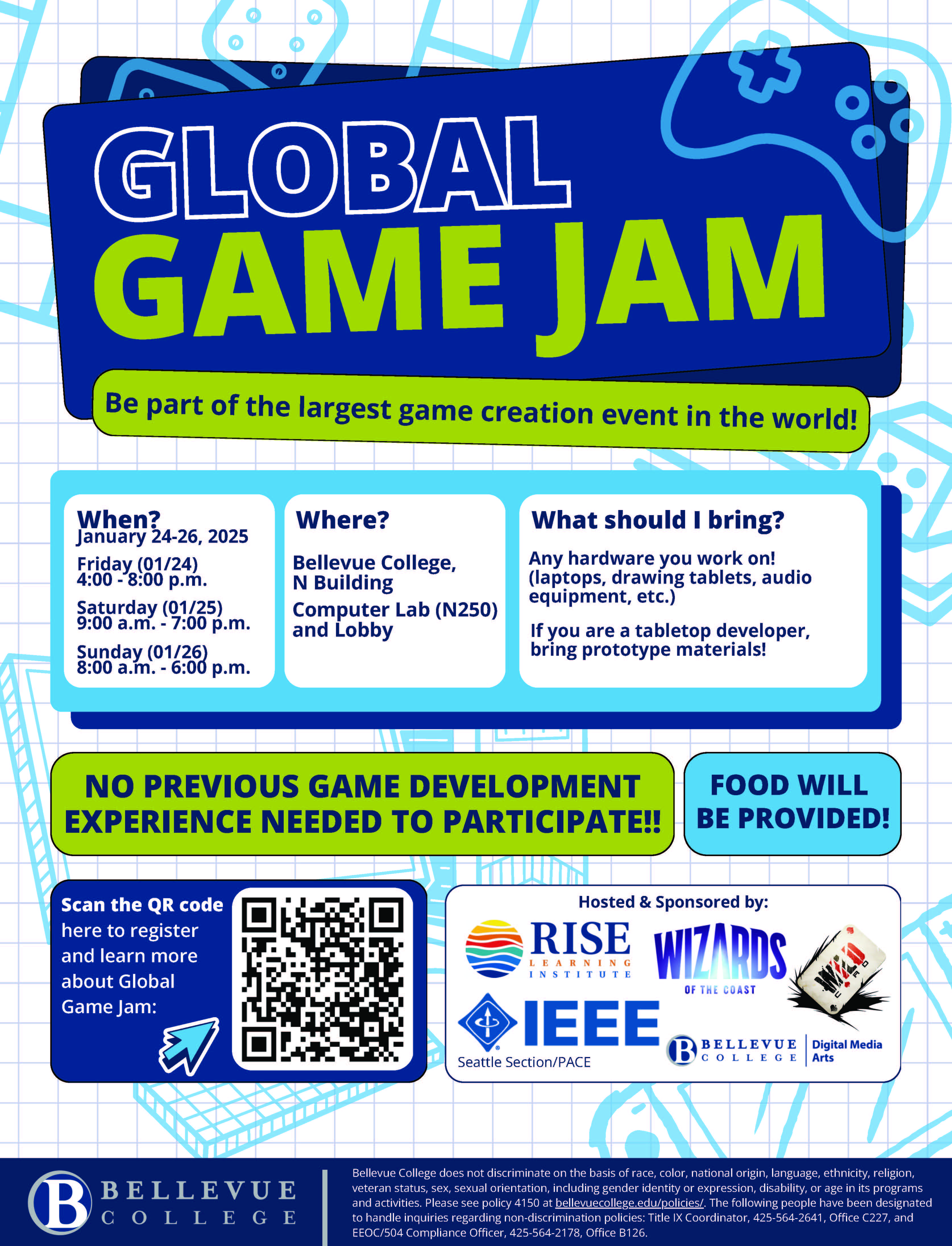 The IEEE Seattle Section is teaming up with Bellevue College to host a Global Game Jam site.