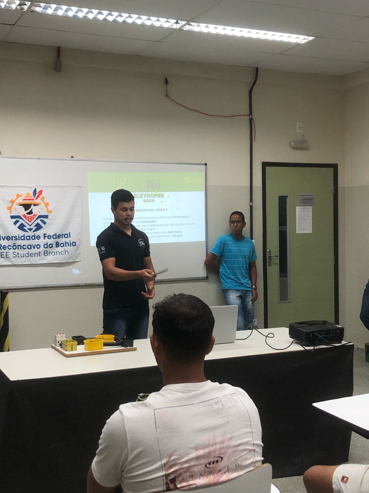 The general meeting of the PES chapter, with the mandatory presence of all members, will be held on 03/20/2024, from 5:30 PM to 6:30 PM. The meeting aims to discuss PES projects and present the room. In addition to the members, the responsible professors will also be present. During the meeting, guidelines for the development of activities throughout the year will be aligned, ensuring efficient organization and active participation from all involved.