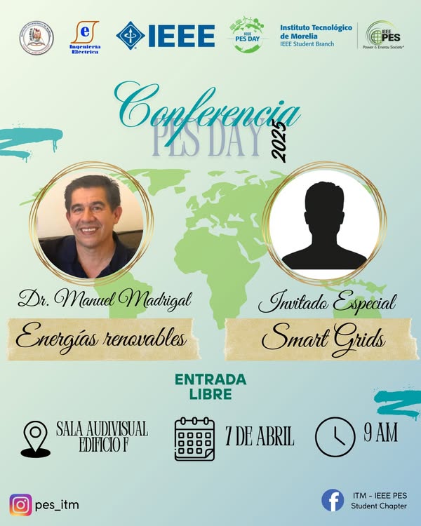 In celebration of PES DAY, the IEEE PES student chapter invites you to join us for our conference session where we will explore key topics on renewable energies and Smart Grids, taught by experts in the area. A unique opportunity to expand your knowledge and learn about trends in the energy sector.