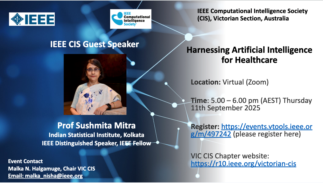 For further details, contact: Malka N. Halgamuge, Chair VIC CIS (malka_nisha@ieee.org)