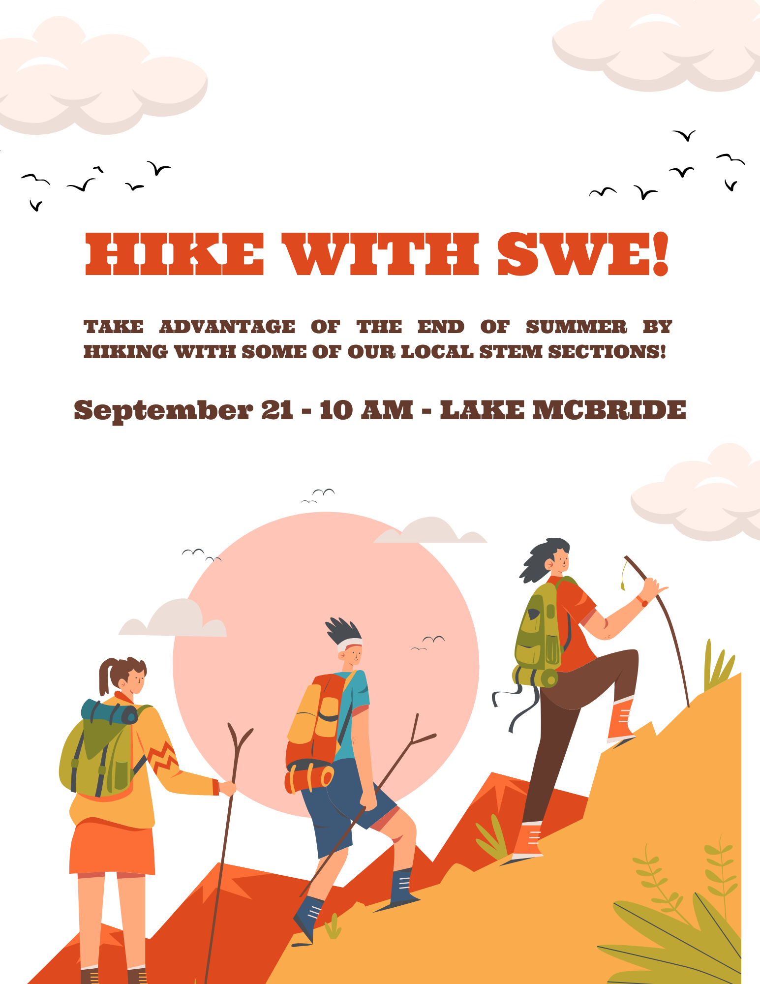 SWE ECI is hosting a collaborative hike with some of our local STEM organizations to celebrate the end of summer! Join us at Lake McBride for a fun day of nature, networking, and new friends.