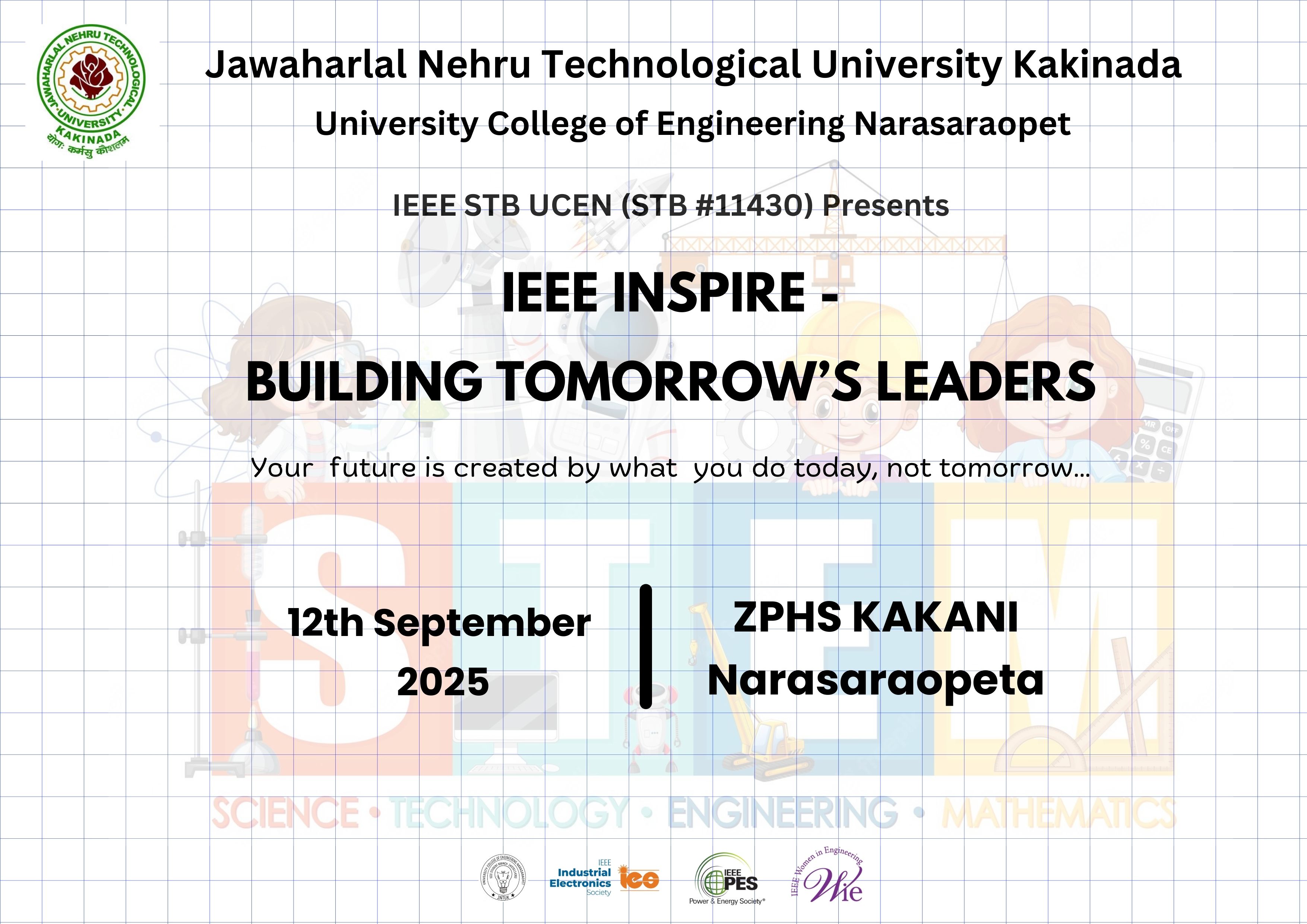 The IEEE Student Branch is organizing an outreach program titled “IEEE Inspire: Building Tomorrow’s Leaders” for 9th and 10th class students. The initiative aims to motivate and guide young minds in making informed choices about their future after Class 10.