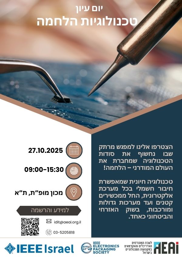 למידע נוסף והרשמה בקישור>>https://www.aeai.org.il/activity/soldering/