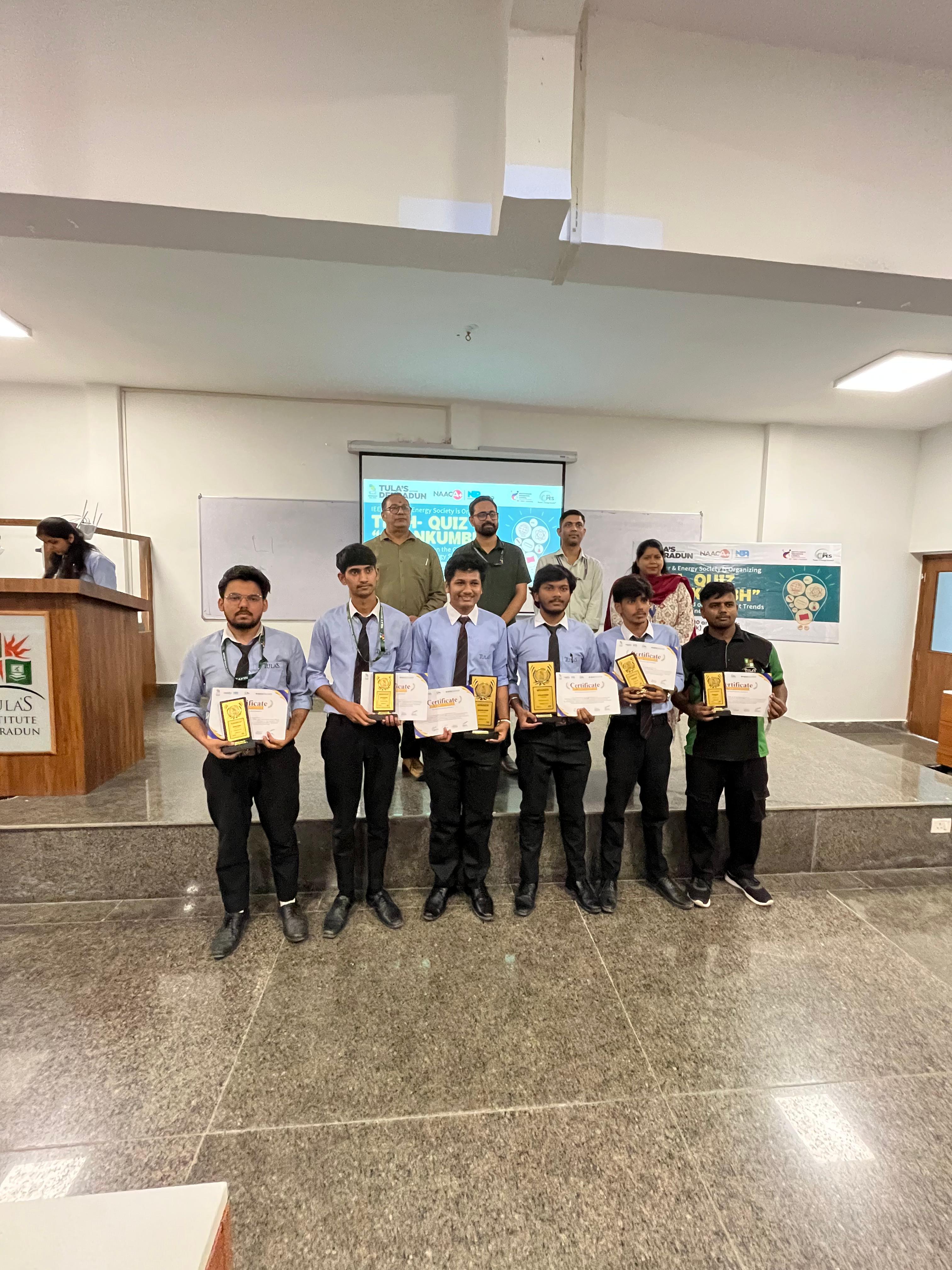 GyanKumbh 2025 is an exciting Quiz Battle organized by the IEEE PES Chapter, Tula’s Institute Student Branch, aimed at testing knowledge, quick thinking, and teamwork. This intellectual competition is designed to challenge participants across multiple domains while encouraging a spirit of healthy competition and collaboration.Participants will compete in teams, battling it out through thought-provoking questions and time-bound challenges. The event promises not only to test participants’ knowledge but also to enhance their problem-solving, teamwork, and communication skills.