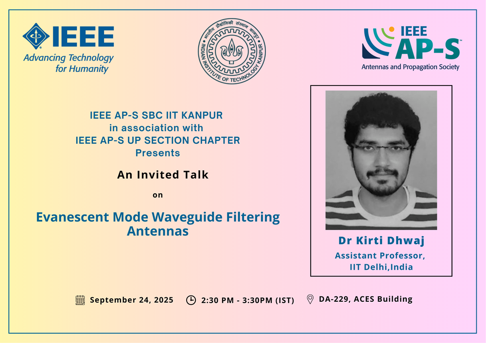 Dr Kirti Dhwaj received his PhD in 2018 at the University of California, Los Angeles, and his B.Tech. from IIIT Allahabad in 2012. He has worked with Broadcom Inc., Silicon Laboratories, Bell Laboratories and Georgia Institute of Technology as a Microwave Filter Engineer. Currently, he is an Assistant Professor at IIT Delhi and leads the Indian Army's ELINT development programme. He also holds the Core Research Grant for developing wide-beam filtering antennas from the Department of Science and Technology. He has been a faculty with Bharat Electronics, teaching microwave filters, and led a course on microwave technology for officers of the Central Reserve Police Force. His research interests are in the fields of microwave filters and filtering antennas. Dr Kirti twice won filter design competitions at the International Microwave Symposium, whereas his students have won the same accolade for filtering antennas at MAPCON.