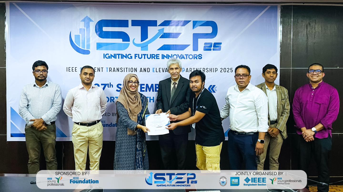 On 27 September 2025, the IEEE NSU Student Branch successfully hosted the flagship event titled “IEEE Student Transition and Elevation Partnership 2025 - Igniting Future Innovators”. The event was jointly organized by IEEE NSU Student Branch, IEEE Young Professionals Bangladesh, and IEEE Bangladesh Section. The day-long program was specifically designed to help undergrad students smoothly transition from academic life to the professional world with the help of opportunities provided by IEEE.