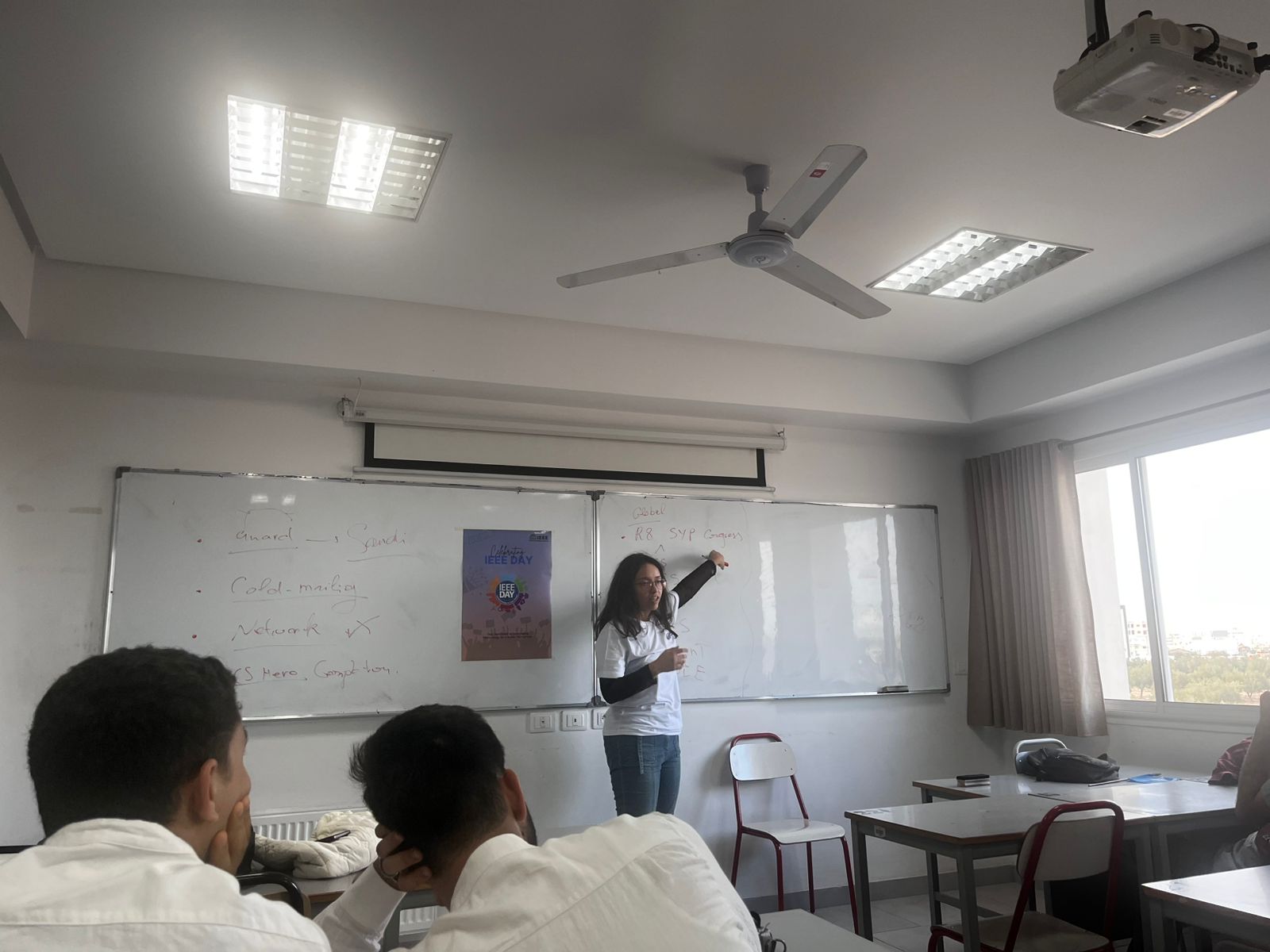 During two special sessions, Ms. Khadija and Mr. Faress shared their IEEE experiences — Khadija talked about her journey as a former IEEE ISSAT SO Chair, and Faress shared his past IEEE experiences, giving us valuable insights for the future. π