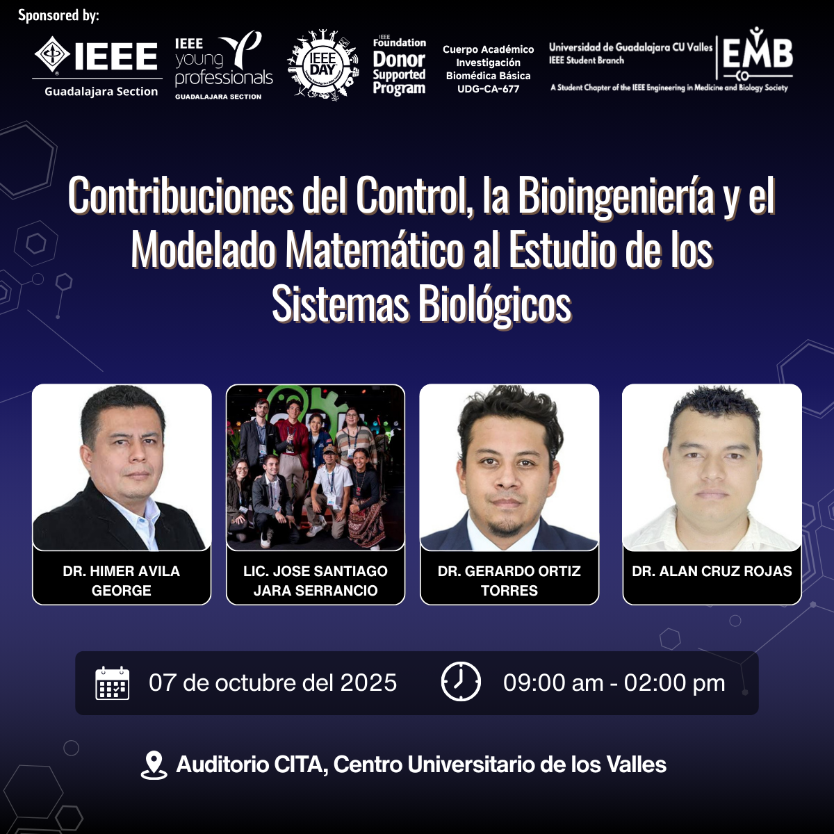 La conferencia es organizada por IEEE Young Professionals Guadalajara Section en colaboración con el IEEE EMBS CUValles Student Chapter, y está dirigida a estudiantes, profesionales e investigadores interesados en el vínculo entre la ingeniería, la biomedicina y las ciencias de la vida.