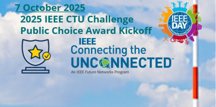 Get ready to meet the innovators making global connectivity a reality at the 2025 Connecting the Unconnected Challenge Public Choice Award Kickoff! This is your exclusive chance to learn about the inspiring finalists—the brilliant minds developing real-world solutions to bridge the digital divide. The virtual event, happening on 7 October (IEEE Day) will introduce you to their groundbreaking projects, after which you'll get to cast your vote for your favorite to win the coveted Public Choice Award. More than just a showcase, this is a prime opportunity to network and collaborate with fellow enthusiasts, experts, and community leaders who share the drive to save the world by bringing internet access to everyone. Join us to support these life-changing initiatives and be part of the solution!