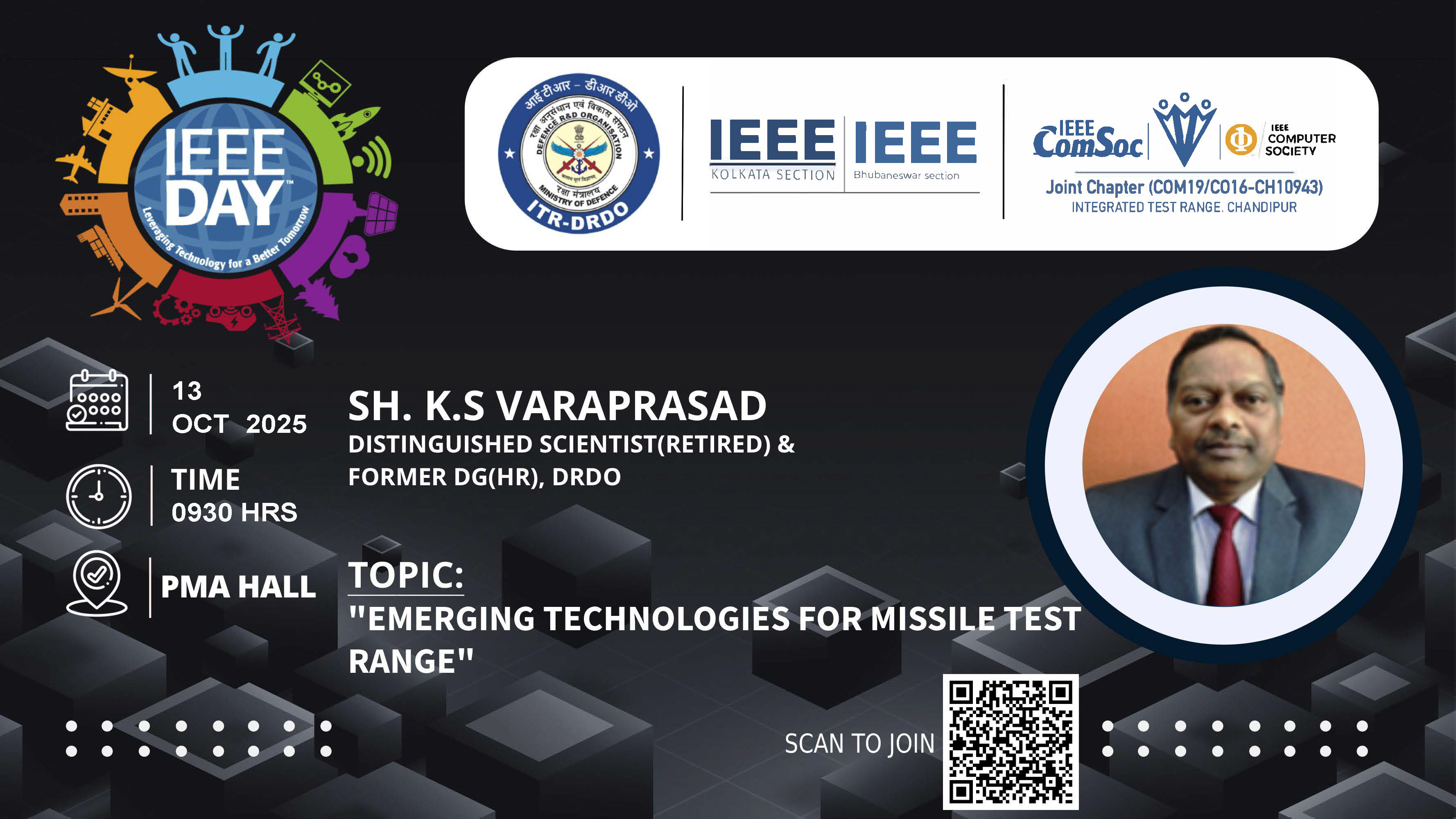 IEEE Day Celebration by Jt Comp and Comm Scieties Chapter, Chandipur. A Lecture is organized by Eminent Scientist Shri K S Varaprasad Ex DG (HR) , DRDO on Emerging Range Technologies.