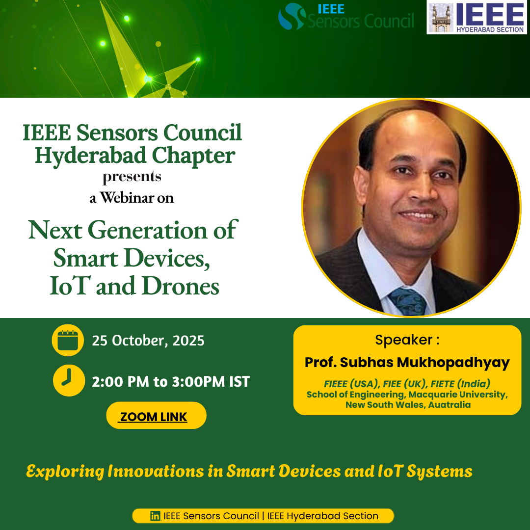 IEEE Sensors Council Hyderabad Chapter presents a Webinar on "Next Generation of Smart Devices, IoT and Drones"