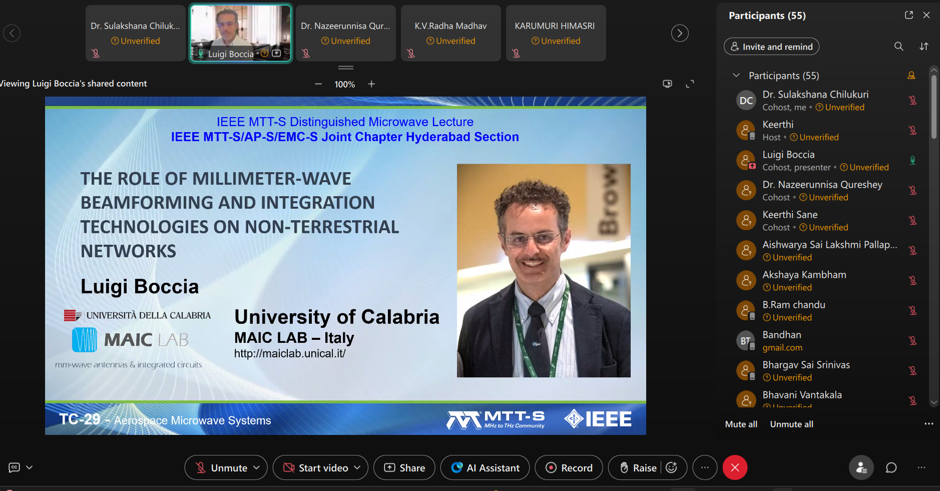 IEEE MTT-S/AP-S/EMC-S Joint Chapter Hyderabad Section organizes IEEE MTT-S DML talk on "The role of millimeter-wave beamforming and integration technologies on Non-Terrestrial Networks (NTN)".