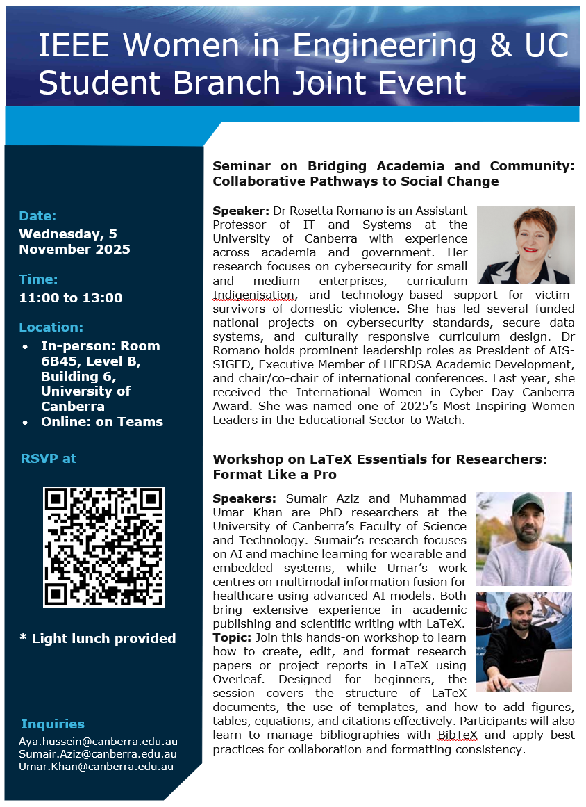 Dr Rosetta Romano is an Assistant Professor of IT and Systems at the University of Canberra with experience across academia and government. Her research focuses on cybersecurity for small and medium enterprises, curriculum Indigenisation, and technology-based support for victim-survivors of domestic violence. She has led several funded national projects on cybersecurity standards, secure data systems, and culturally responsive curriculum design. Dr Romano holds prominent leadership roles as President of AIS-SIGED, Executive Member of HERDSA Academic Development, and chair/co-chair of international conferences. Last year, she received the International Women in Cyber Day Canberra Award. She was named one of 2025’s Most Inspiring Women Leaders in the Educational Sector to Watch.