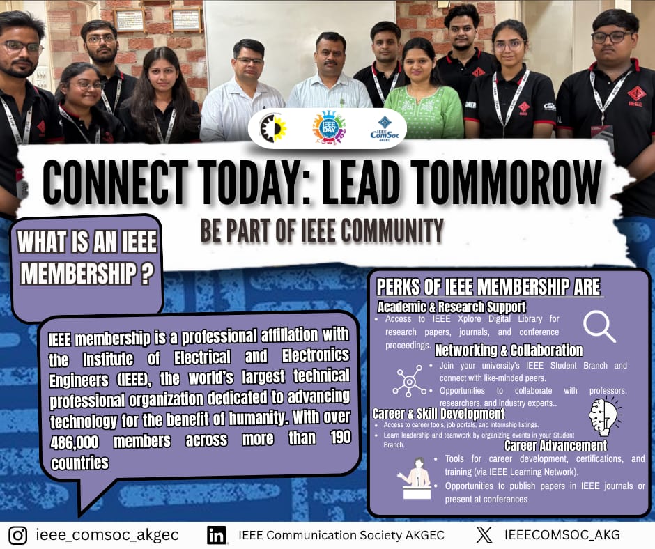 As a part of IEEE Day-2025 Celebrations, the IEEE Student Branch, Ajay Kumar Garg Engineering College (AKGEC) launched an IEEE-Membership Promotion Activity starting from 10th October 2025.