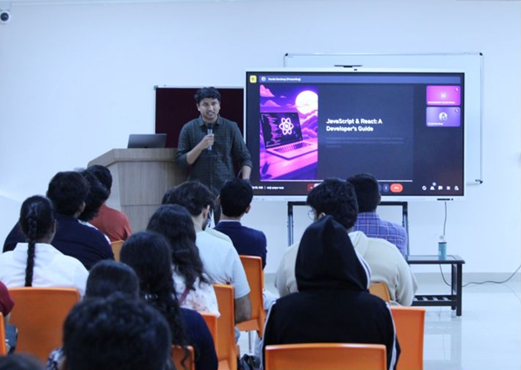 Conducted by Mr. Konda Sandeep, Associate Software Engineer, O.C. Tanner, this session provided students practical experience in modern web development. Participants engaged in real-time coding exercises, gaining hands-on knowledge of JavaScript, React, and web application development, which strengthened their technical competence and industry readiness.