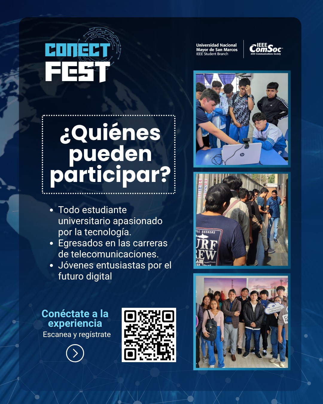 Ya seas estudiante, entusiasta o futuro ingeniero, ConectFest es tu espacio para conectar teoría con práctica, y aprender cómo se diseñan e implementan redes en escenarios reales. ![]()
