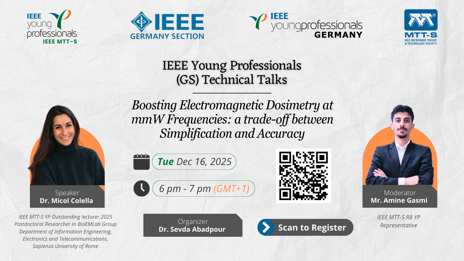 Join us for the December session of the exciting YP Germany Section technical webinars on "Boosting Electromagnetic Dosimetry at mmW Frequencies: a trade-off between Simplification and Accuracy", a collaboration between IEEE MTTs , APs and IEEE Young Professionals Germany.